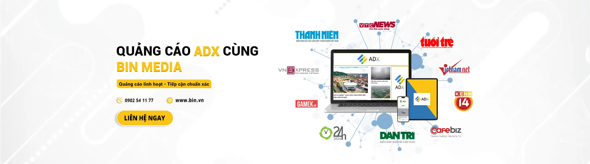 Dân trí, CafeF, Kenh14...Khách hàng được chủ động hoàn toàn trong việc lựa chọn kích thước banner, website hiển thị, chọn lựa đối tượng tiếp cận mục tiêu cũng như chủ động quản lý ngân sách và hiệu quả quản lý chiến dịch quảng cáo.